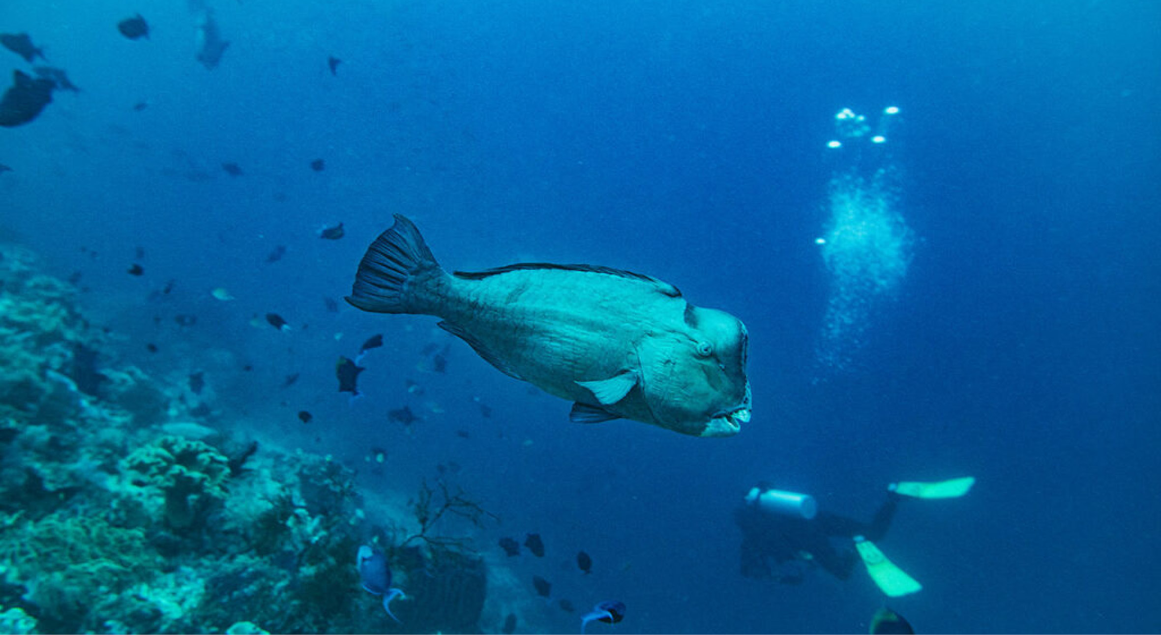 On our inaugural trips to the Forgotten Islands in 2010, our excited visitors enjoyed seeing schools of massive Bumphead parrotfish, tornadoes of Big-eye trevallies, Giant trevallies, Spanish mackerel, schooling barracuda, hammerhead sharks, and a whale shark, to mention a few highlights only.